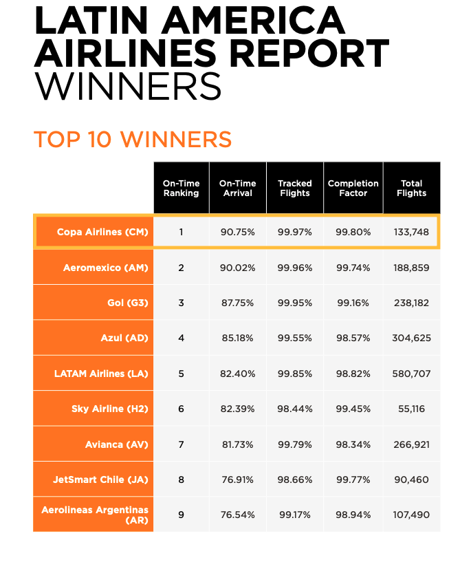 Copa Airlines fue reconocida, una vez más, por Cirium como la aerolínea más puntual de Latinoamérica en 2025, con un índice de puntualidad de 90.75%. Este resultado la ubicó además como la aerolínea más puntual de América y la segunda a nivel mundial, de acuerdo con el informe On-Time Performance 2025.