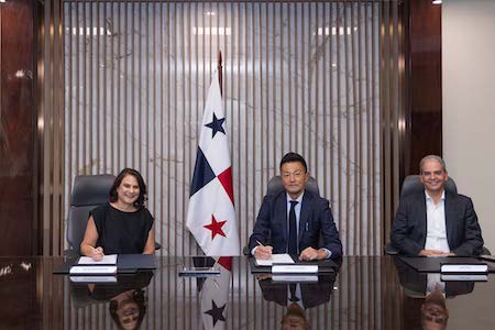 En el acto participaron, en representación del Canal de Panamá, la ingeniera Ilya Espino de Marotta, subadministradora y oficial de sostenibilidad, y por parte de Ricardo Pérez, S.A., los señores Yoshihiro Kawashima, presidente ejecutivo, y Javier Díaz, gerente general.